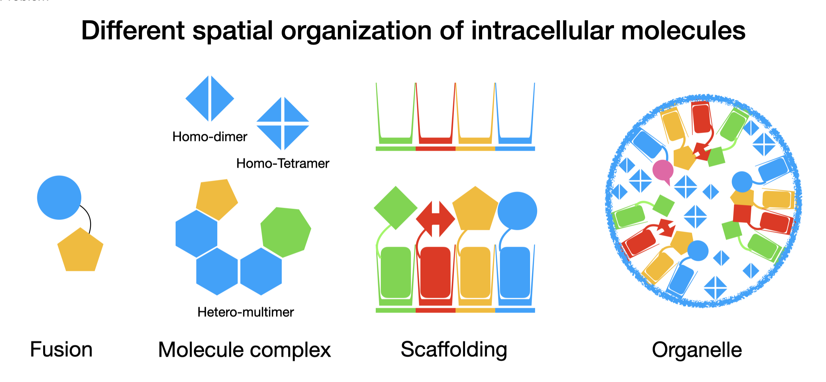 In nature, cells - especially eukaryotic cells - have mastered the art of spatial organization over billions of years. They use precise molecular assemblies and complex endomembrane systems. But nature hasn’t left us much of a blueprint, just genome sequences without clear annotations. As a result, early attempts at spatial engineering focused on mimicking simple, easy-to-understand spatial organization using fusion genes and self-assembly structures.